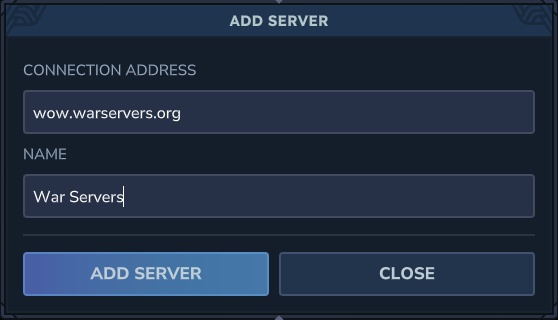 Save the server entry, then select War Servers and click Join.